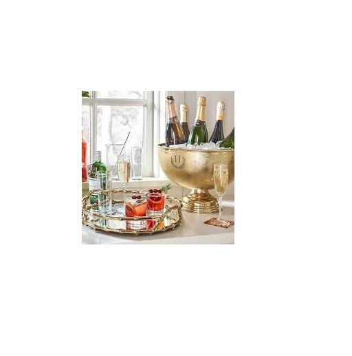 ถาดเสิร์ฟตกแต่งอลูมิเนียมโลหะทำด้วยมือพร้อมชุบทองแดงแบบโบราณมาพร้อมกับของตกแต่งบนโต๊ะอาหารในบ้าน