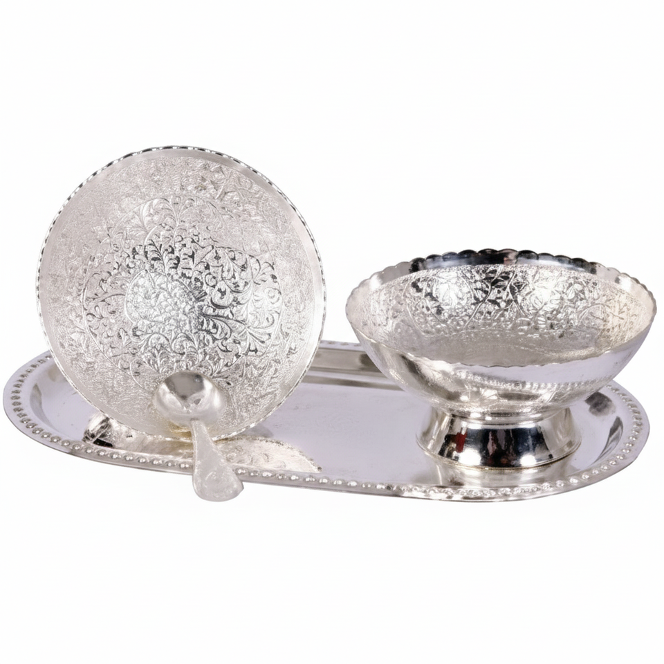 ชุดชามโลหะพร้อมถาดทำด้วยมือชุดของขวัญสำหรับตกแต่งงานแต่งงานของตกแต่งบ้านแบบอินเดียและของขวัญตามเทศกาล