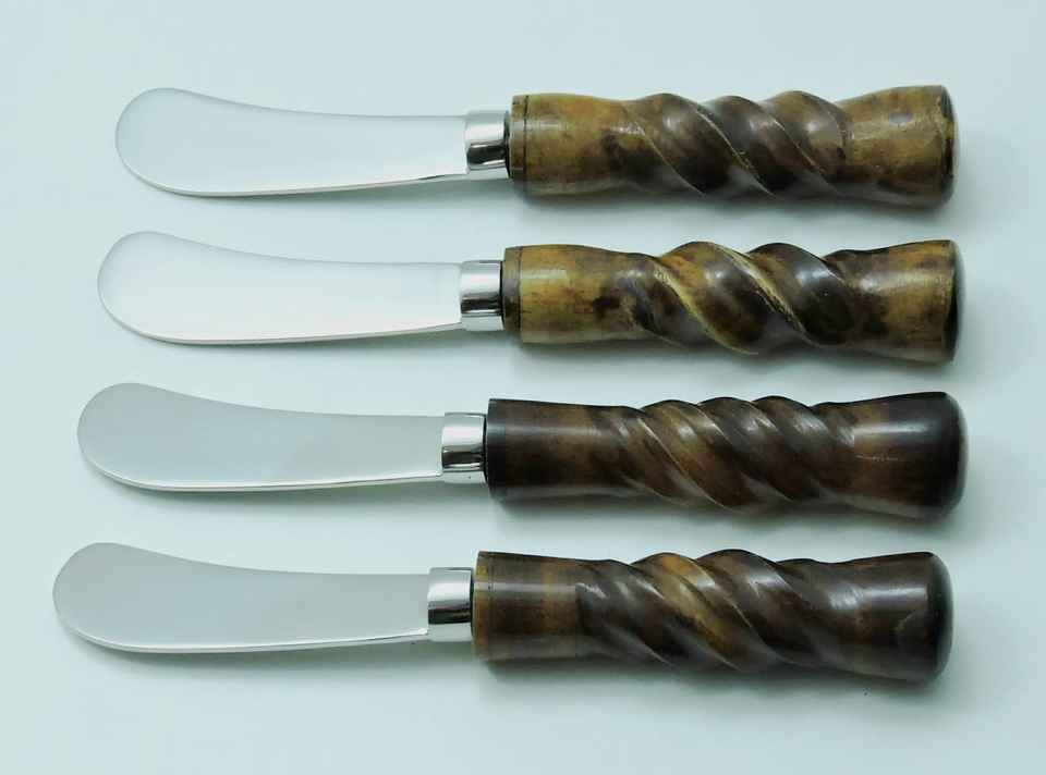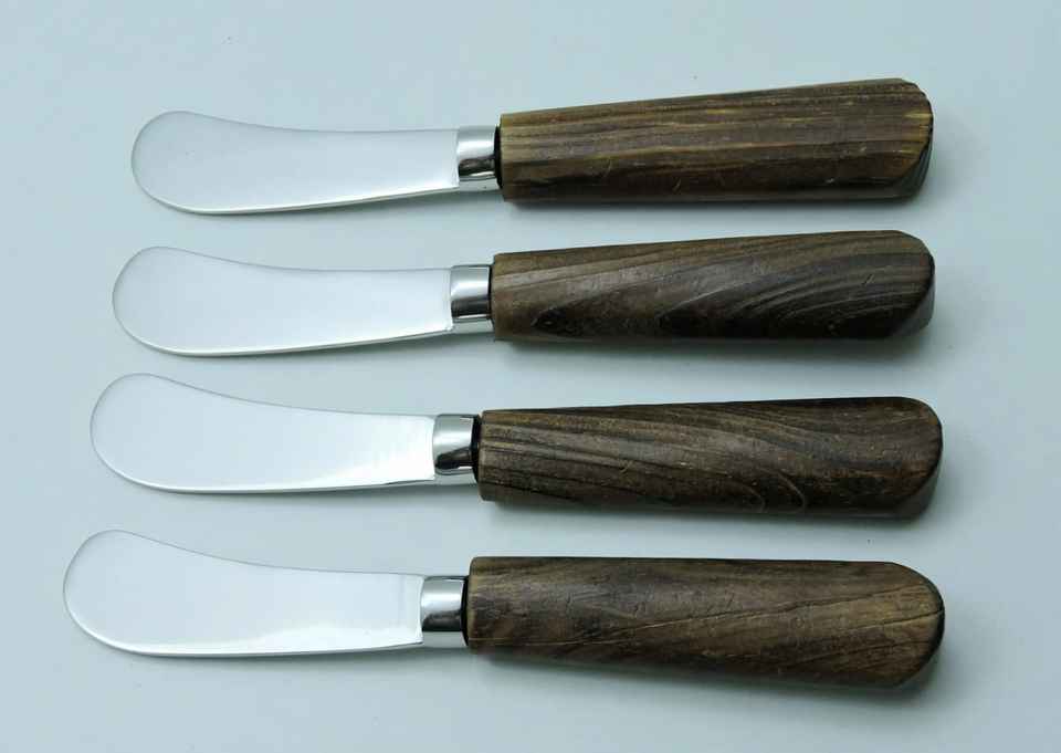 ชุดช้อนส้อมสแตนเลสสตีลเนยโลหะทำด้วยมือด้ามไม้สำหรับบ้านโรงแรมร้านอาหารอุปกรณ์มีดรับประทานอาหารระดับพรีเมียม