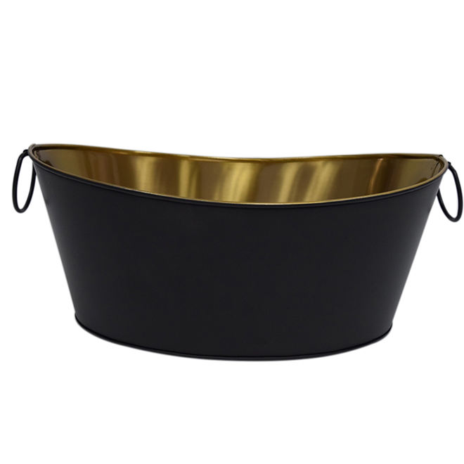 ถังน้ำแข็งโลหะทำด้วยมือพร้อมสีทองและสีดำเหมาะสำหรับโต๊ะอาหารสำหรับดื่มเบียร์และเก็บไวน์