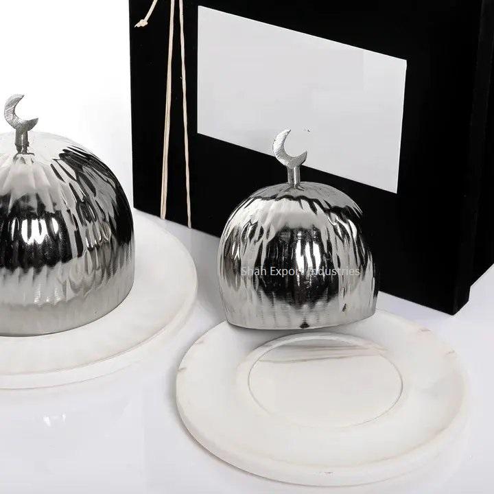 ชามเสิร์ฟช็อคโกแลตโลหะและหินอ่อนทำด้วยมือพร้อมโดมทรงกลมสำหรับใช้ในโรงแรมและร้านอาหาร