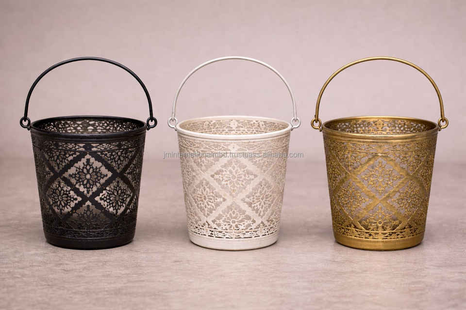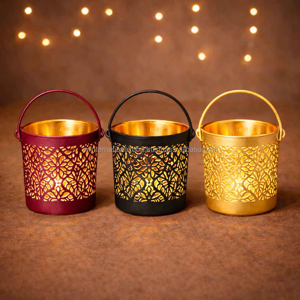 เชิงเทียนโลหะทำมือสไตล์โมร็อกโกแบบตะวันออก ลายสลักทรงกระบอก สำหรับคริสต์มาส วันวาเลนไทน์ และวันเกิด - ชุด 3 ชิ้น