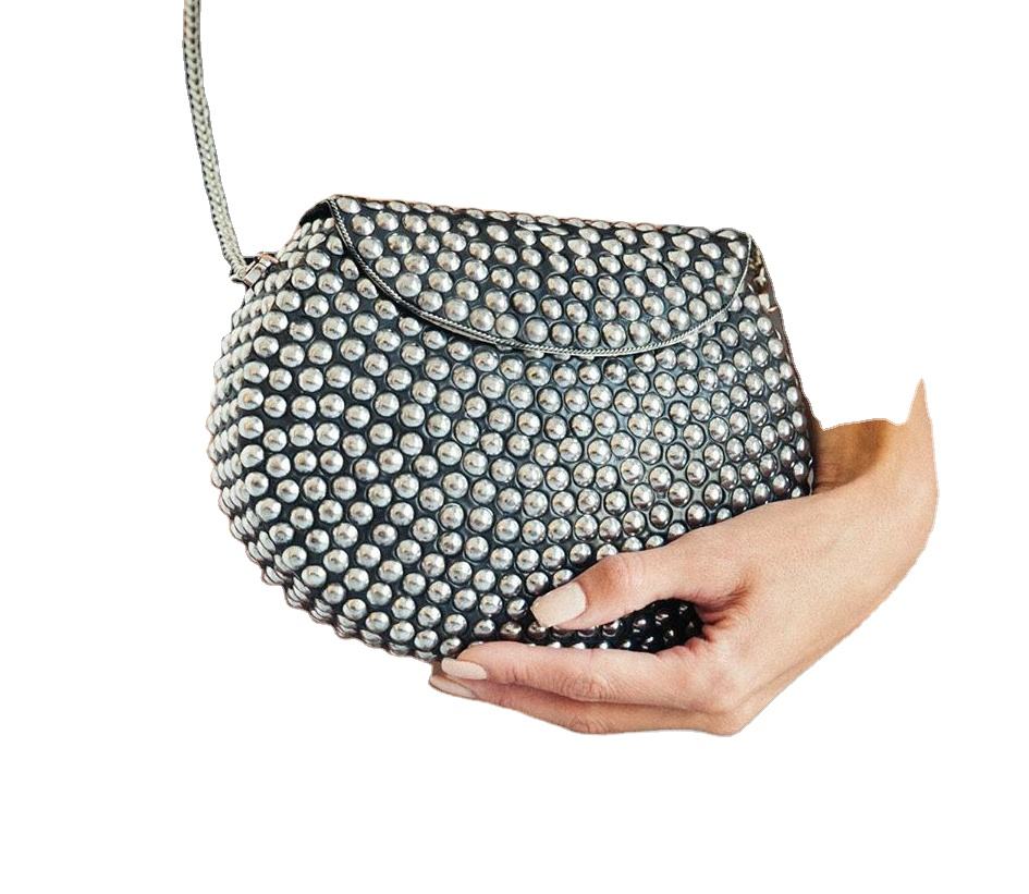 กระเป๋าคลัทช์ทำมือโลหะโมเสกกระเป๋าเงินแบบกล่องประดับด้วยลูกปัดดีไซน์ใหม่สูงกระเป๋าราตรีที่มีความสวยงามเป็นธรรมชาติ