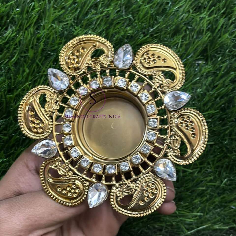เชิงเทียนโลหะเคลือบทองดีไซน์ด้วยขนนกยูงสำหรับบ้านงานแต่งงาน