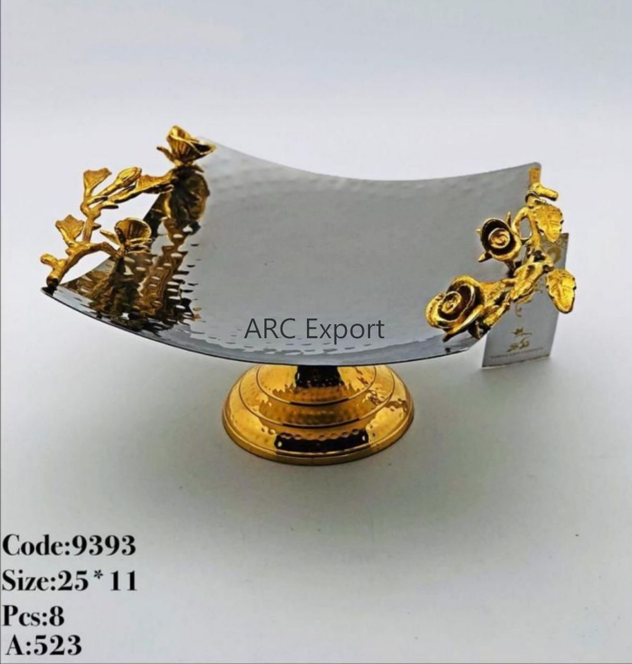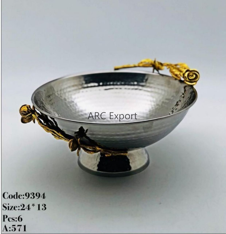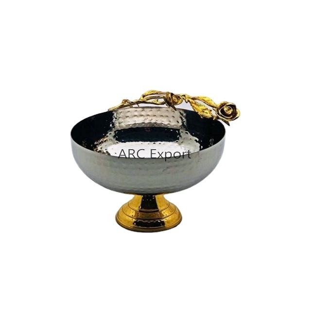 Handmade Metal Shining Polished Hammered Table Ware Bowl Wedding Decoration Bowls With Gold Color Handle Party Metal Bowls