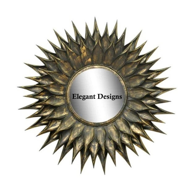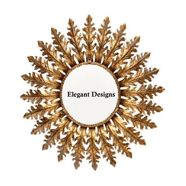 กระจกติดผนังโลหะทำด้วยมือชุบทองออกแบบดอกไม้รูปร่างกระจกโรงแรมและตกแต่งบ้านพิเศษแขวนผนังกระจก
