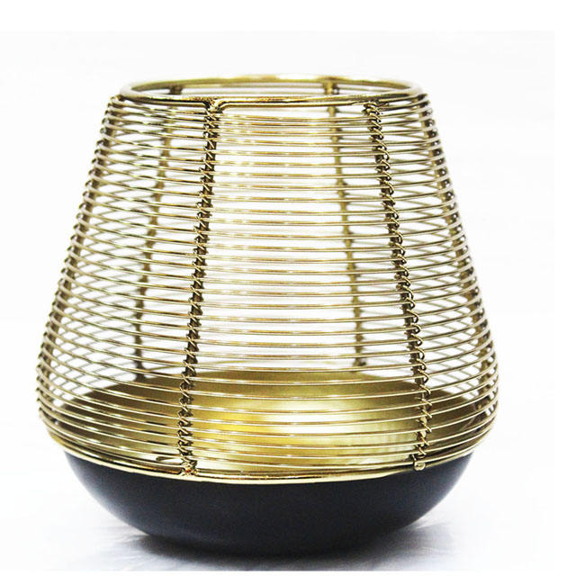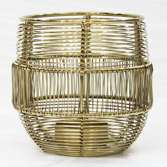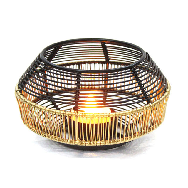 ตะกร้าหวายลวดโลหะงานแฮนด์เมดสีดำและสีทองสำหรับตกแต่งบ้านที่ใส่เทียนแท่นวางกระถางต้นไม้