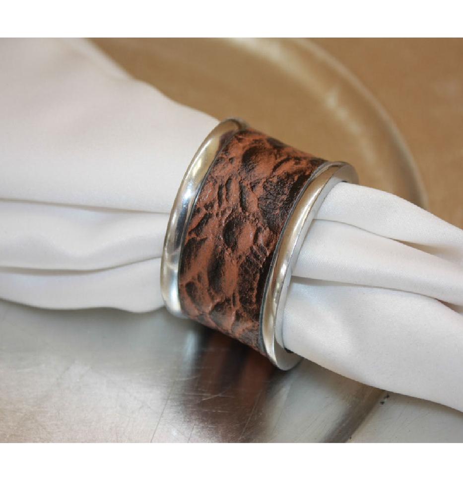 ห่วงรัดผ้าเช็ดปากทำจากโลหะและหนังสำหรับตกแต่งในโอกาสพิเศษงานขอบคุณสำหรับการตกแต่งโต๊ะและอุปกรณ์เสริมสำหรับคริสต์มาส
