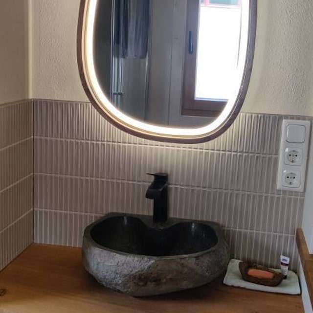 ทำด้วยมือกรอบไม้ทรงรีกลางศตวรรษที่ทันสมัยเป็นมิตรกับสิ่งแวดล้อมของตกแต่งผนังน้ำหนักเบามีสไตล์อาร์ตเดคโคกระจกแก้วหรูหราห้องน้ำ