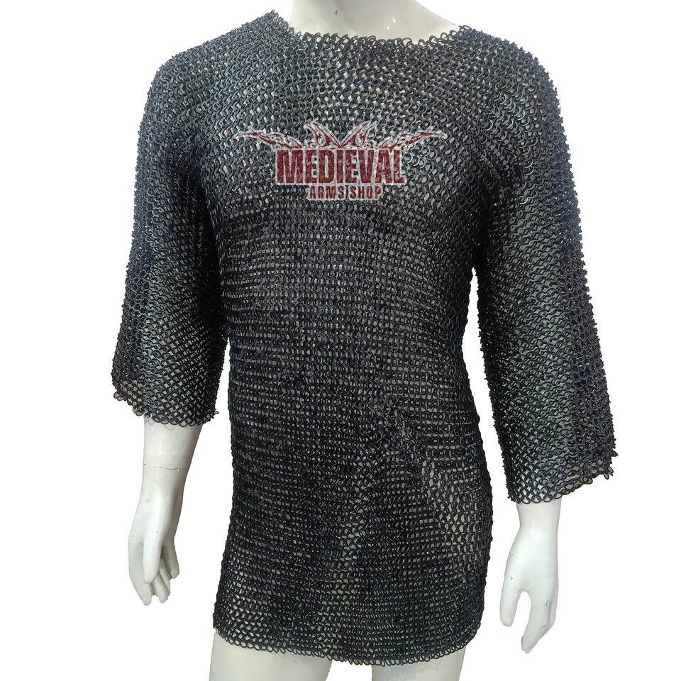 ชุดเกราะเหล็กกล้าอ่อนทำมือแบบแฮนด์เมด แขนยาวเต็มตัว แบบวงแหวนติดกันพร้อมแหวนรอง สำหรับฮาโลวีนและการจำลองสถานการณ์ทางประวัติศาสตร์
