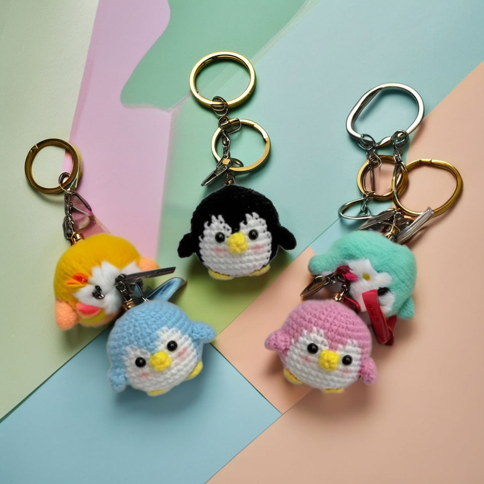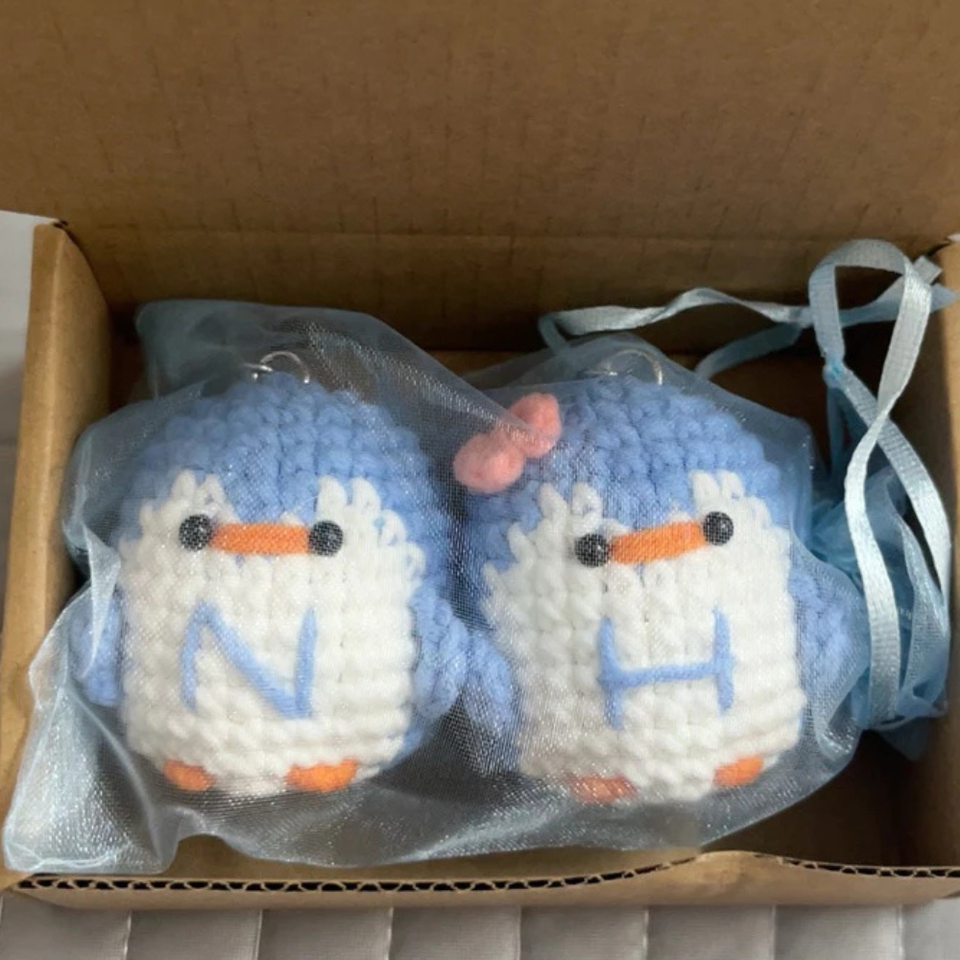 พวงกุญแจนกเพนกวินถักโครเชต์ขนาดเล็กทำด้วยมือปรับแต่งสีได้สไตล์การ์ตูนคลาสสิกโดยศิลปินชาวเวียดนาม