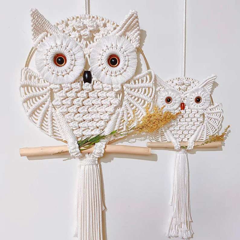 ที่แขวนติดผนังแบบถักแมคคราเม่ขนาดเล็กงานแฮนด์เมดปีกนางฟ้าม่านแขวนติดผนังอุปกรณ์ตกแต่งบ้าน