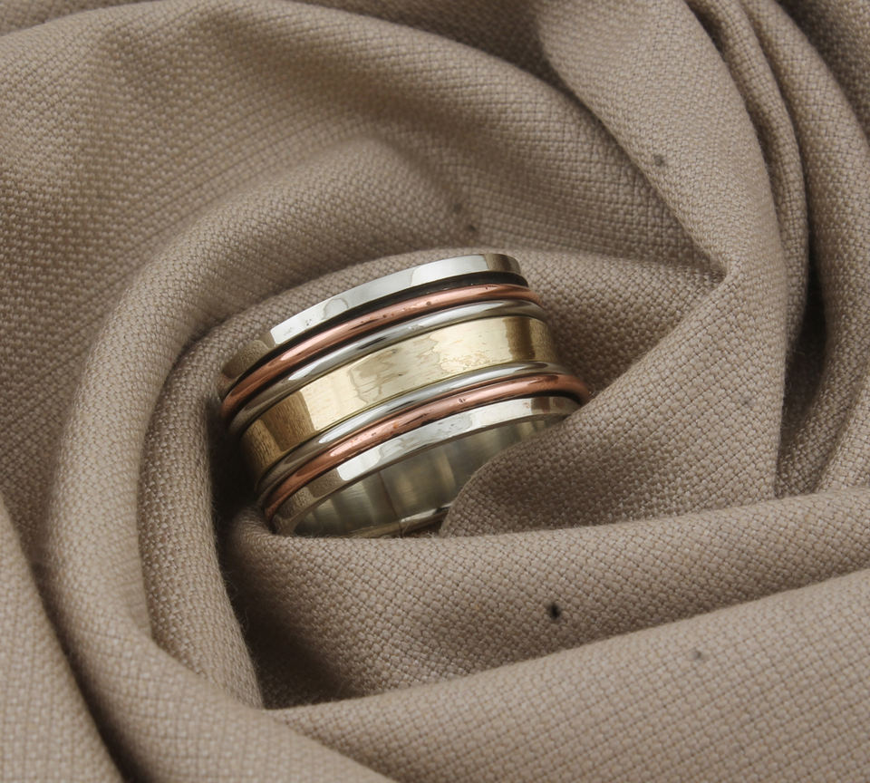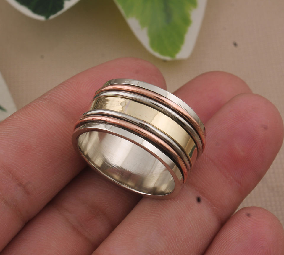 แหวนโลหะผสมทำมือ เงินแท้ 925 ทองแดงและทองเหลือง แหวนหมุนสองสี สไตล์โบโฮ งานฝีมือ ขายส่ง