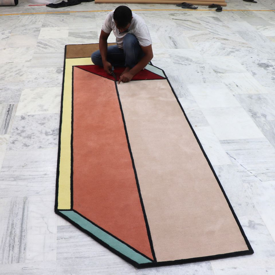 พรมขนสัตว์สีน้ำเงิน 3 มิติ งานแฮนด์เมด สไตล์โมเดิร์น กันลื่น สำหรับตกแต่งบ้าน ห้องนั่งเล่น ล็อบบี้โรงแรม ห้องละหมาดของวัยรุ่น สำนักงาน - ทอมือ