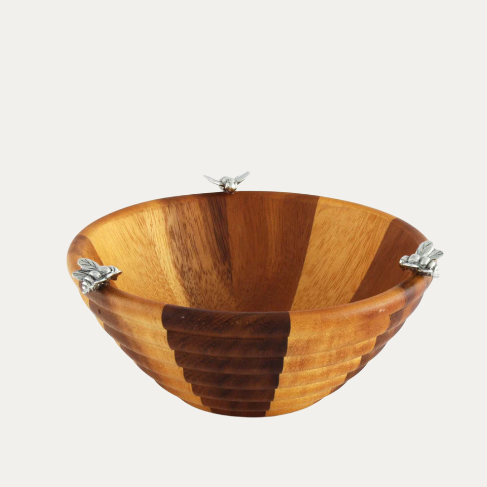 ชามเสิร์ฟไม้อะคาเซียพร้อมกุหลาบสีเงินสำหรับตกแต่งโต๊ะรับประทานอาหารหรือชามสลัดดีไซน์ทันสมัยทำด้วยมือ