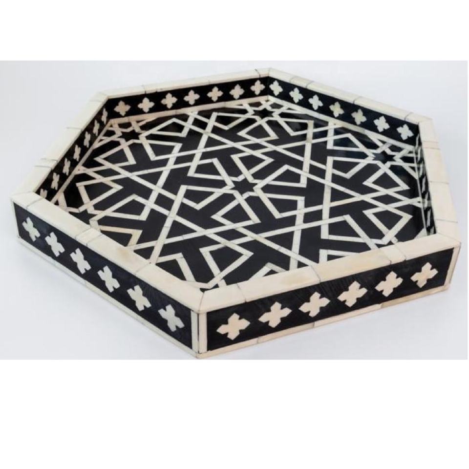 ถาดเสิร์ฟแบบฝังกระดูกดีไซน์ทันสมัยทำด้วยมือถาดรองชากาแฟลายโบราณงานหัตถกรรมกระดูก