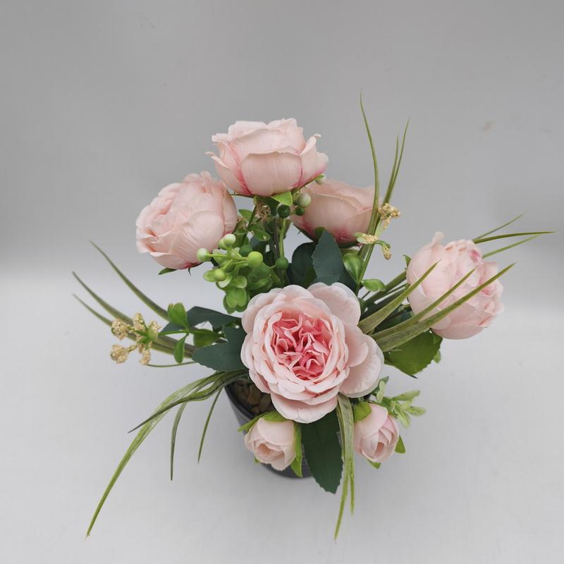 ของตกแต่งบ้านรูปดอกกุหลาบเล็กสีชมพู ดีไซน์ทันสมัย ทำด้วยมือ ต้นไม้ประดิษฐ์ในกระถางพลาสติก ตกแต่งผนัง