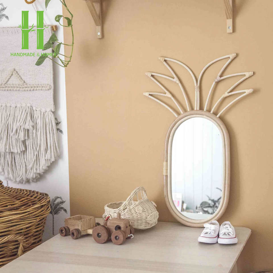 กระจกแขวนผนังกระจกหวายเป็นมิตรต่อสิ่งแวดล้อมทันสมัยทำด้วยมือ-ตกแต่งห้องนอนเด็กและห้องนั่งเล่นของเวียดนาม