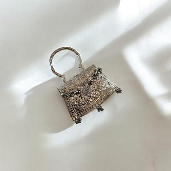 กระเป๋าคลัทช์สะพายข้างแบบโมเสคโลหะชุบทองโบราณสไตล์โมเดิร์นทำมือ ประดับลูกปัดหลากสีสันขัดเงา สำหรับงานกลางคืน