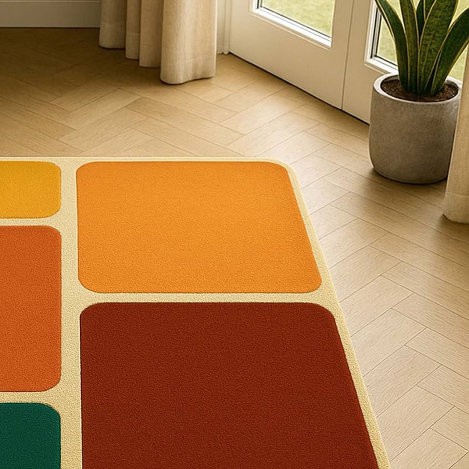 พรมขนสัตว์รูปทรงเรขาคณิตแบบโมเดิร์นทำด้วยมือพรมปูพื้นแนวนามธรรมที่ทำด้วยมือสำหรับห้องนั่งเล่นตกแต่งบ้านปิกนิก