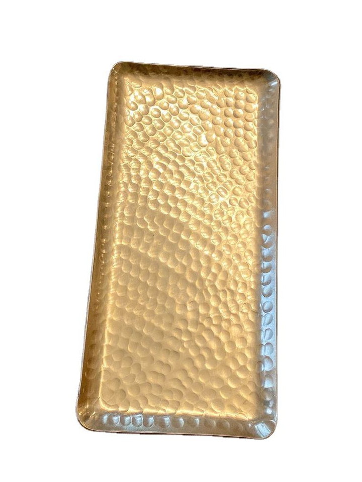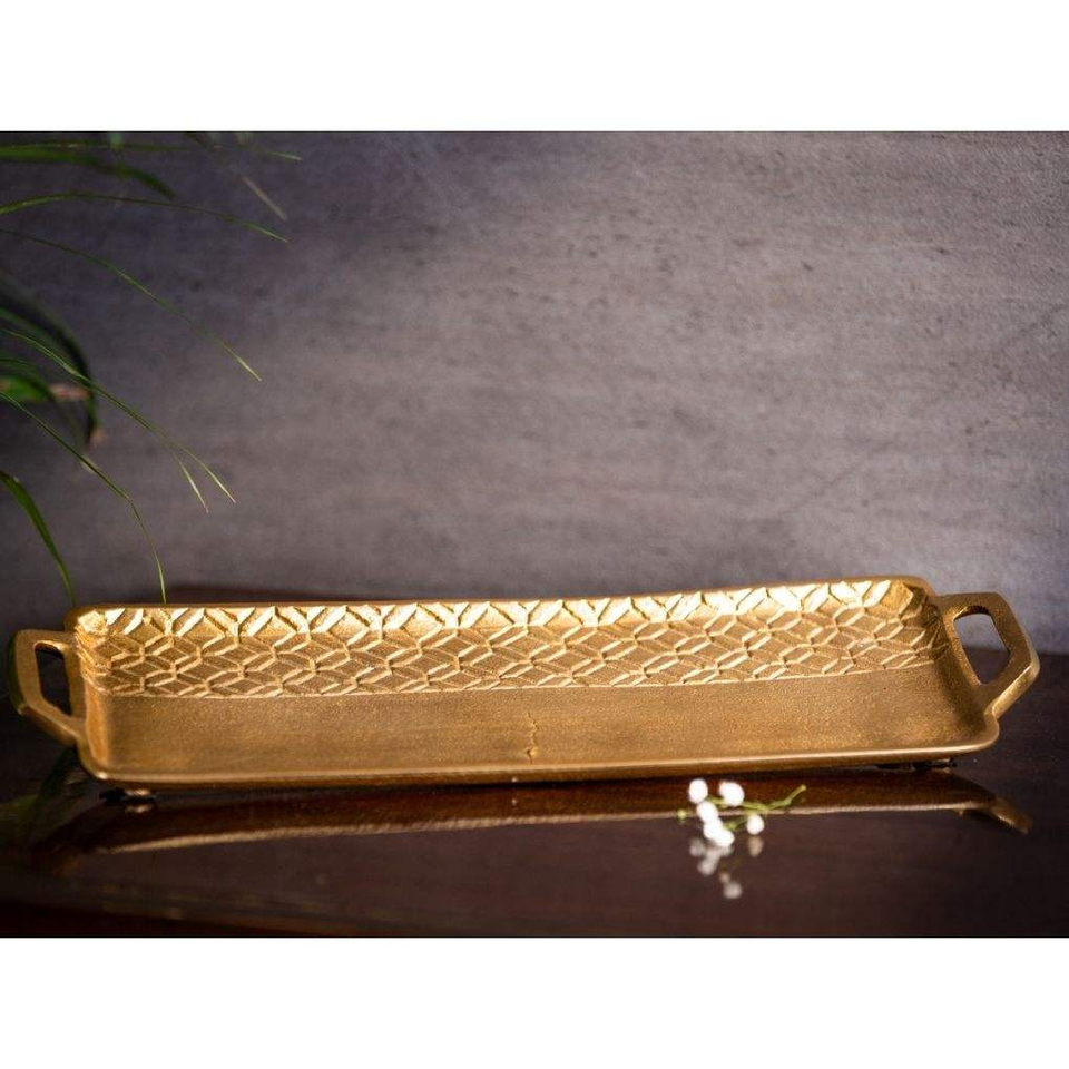 ถาดรองโต๊ะทองเหลืองเคลือบทองทันสมัยทำด้วยมือถาดเสิร์ฟบนโต๊ะลายนูนตกแต่งคริสต์มาสบ้านพร้อมที่จับสบายอินเดีย