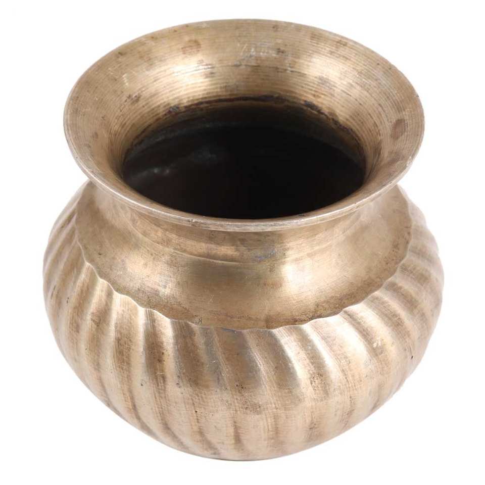 กระถางน้ำทองเหลืองทำมือสไตล์โมเดิร์นสำหรับพิธีกรรม กระถางดอกไม้ กระถางสวน สำหรับตกแต่งบ้าน ขนาด 3.10 นิ้ว รุ่น SND-372