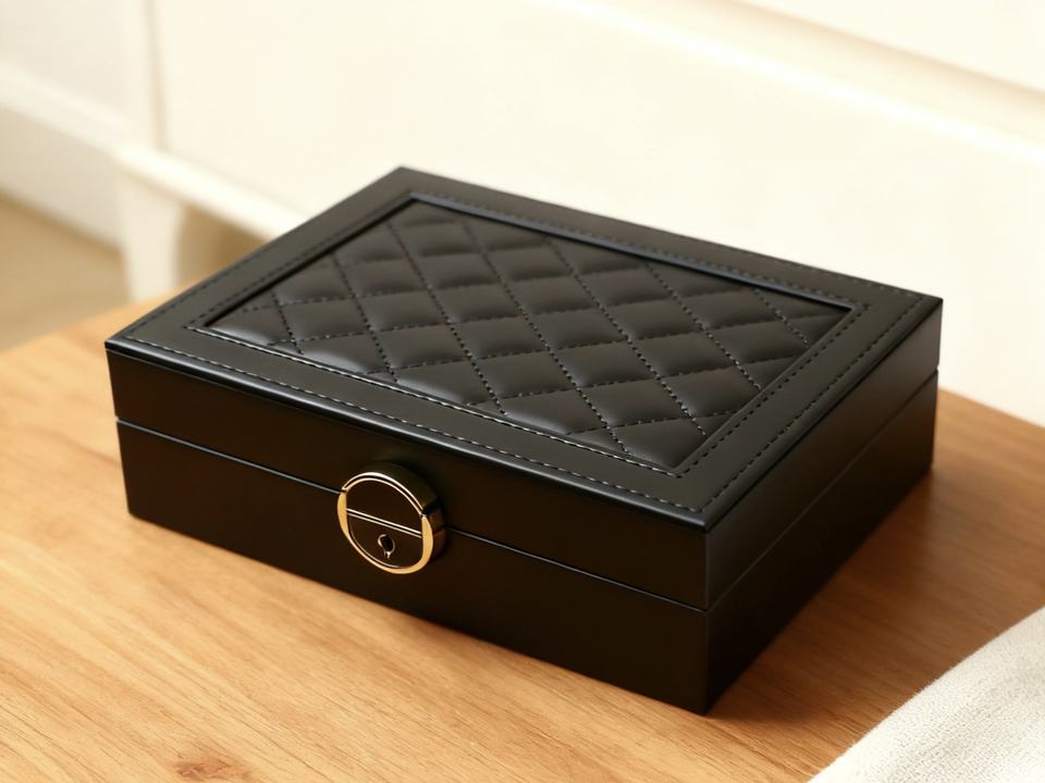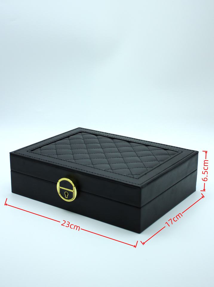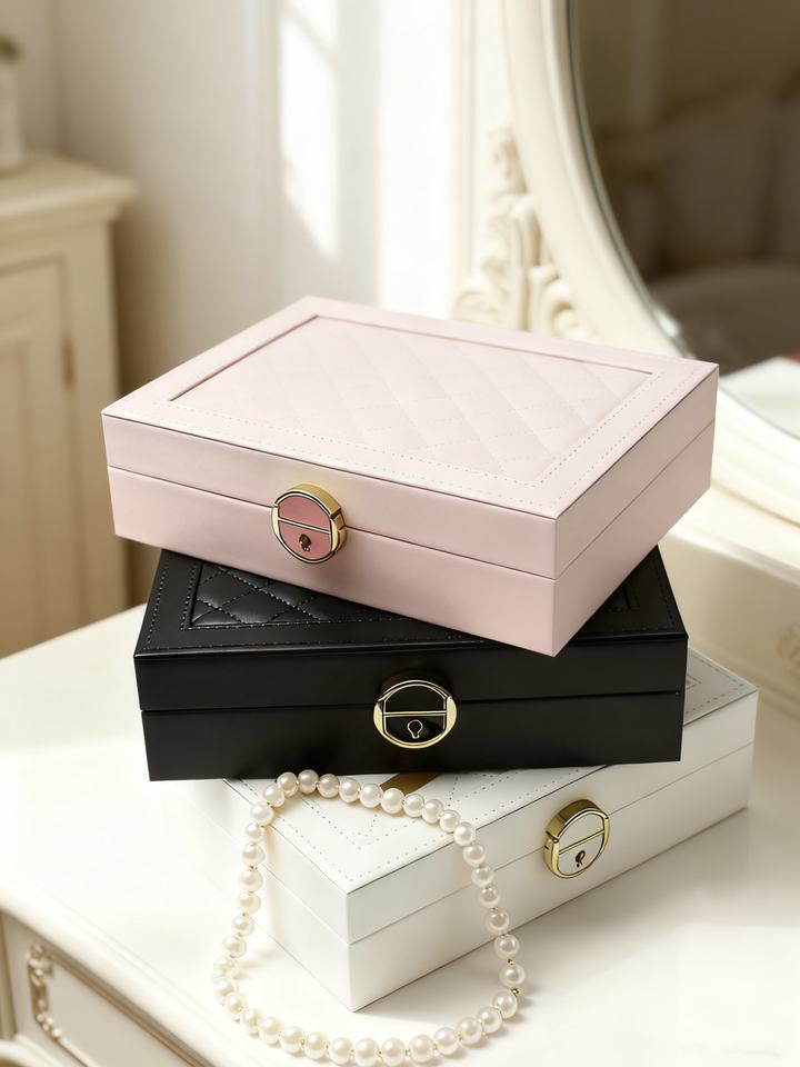 กล่องใส่เครื่องประดับหนัง PU แบบพกพา หรูหรา ทันสมัย ทำมือ พร้อมกุญแจล็อค สำหรับใส่สร้อยคอ ต่างหู นาฬิกา รูปทรงสี่เหลี่ยมผืนผ้า