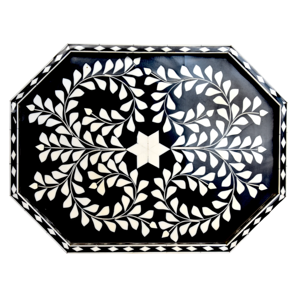 Handmade Modern Pattern Serving Tray with Mother of Pearl Inlay Wooden Bone Mop Inlay for Kitchen Home Furniture-Imported India