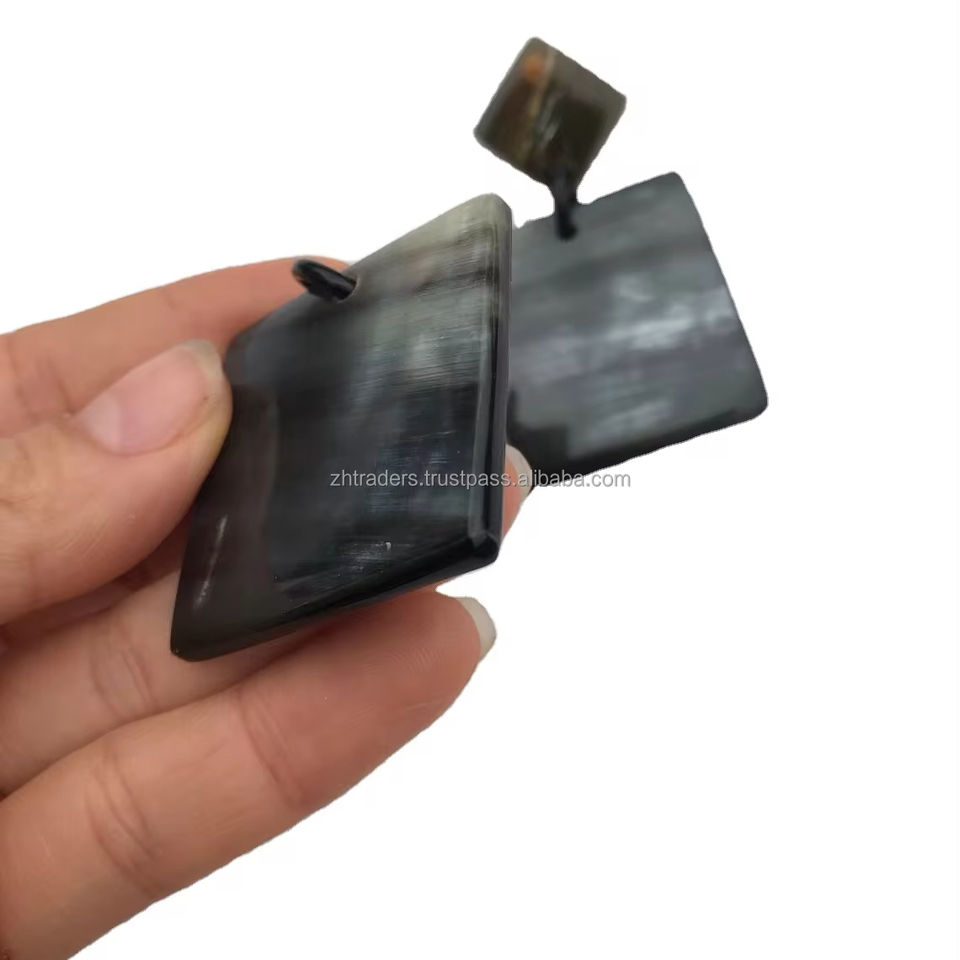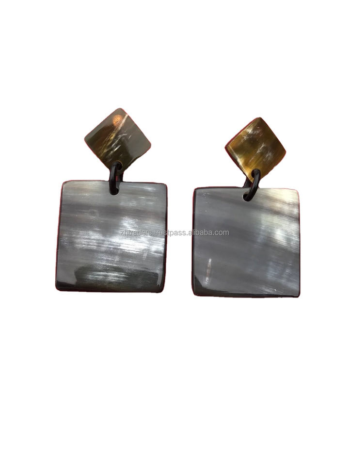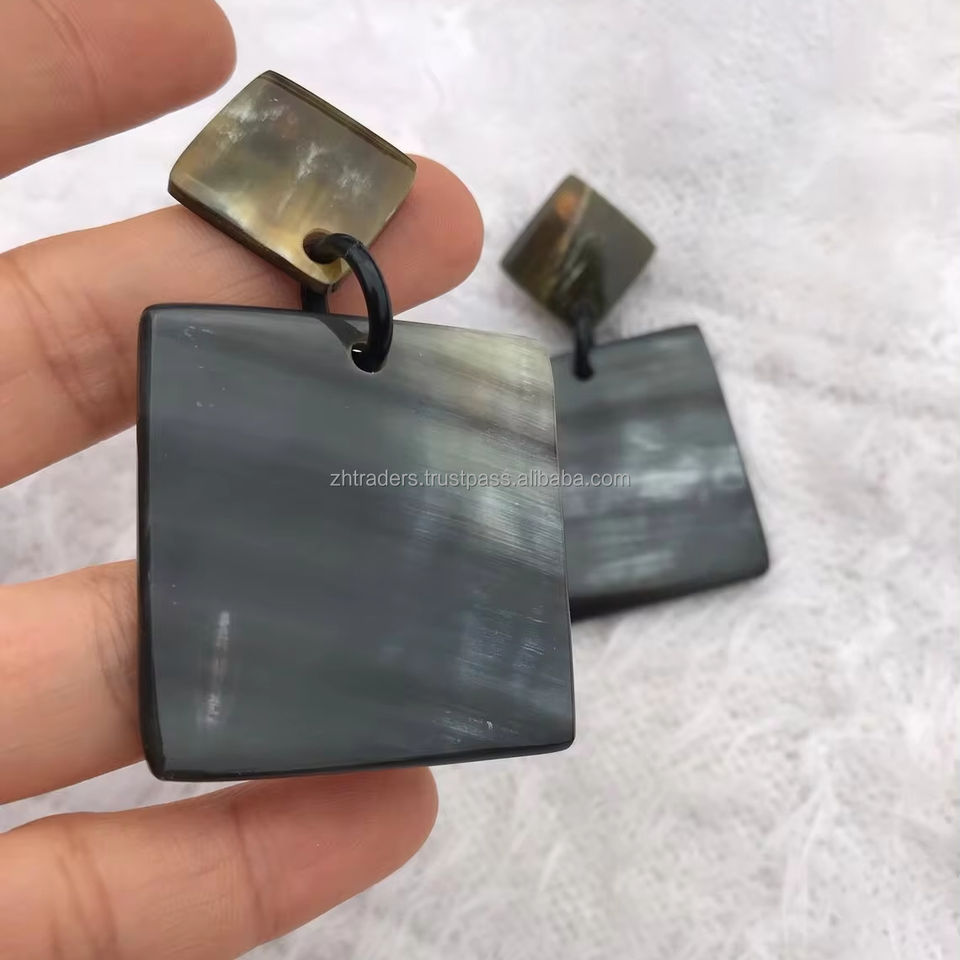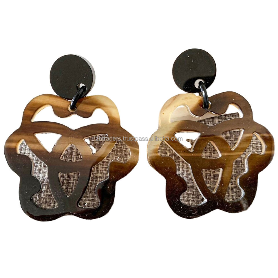 ต่างหูไข่มุกและเพชรแบบโมเดิร์นทำด้วยมือพร้อมแตรควายธรรมชาติปรับขนาดได้สำหรับเด็กผู้หญิง