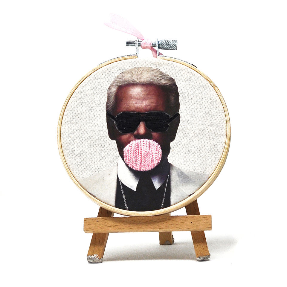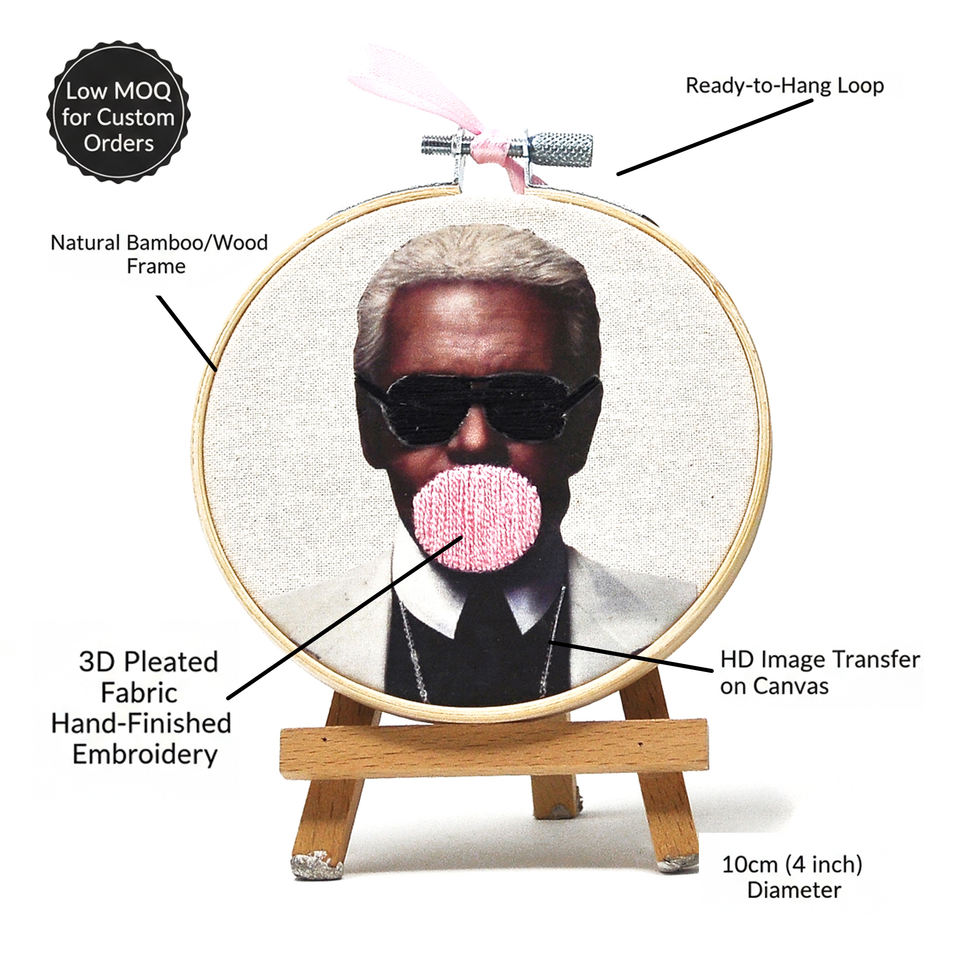 งานปักผ้าป๊อปอาร์ตสมัยใหม่ทำมือ ตกแต่งผนังแบบวงกลม ขนาด 10 ซม. ทำจากไม้ไผ่และผ้าฝ้ายออร์แกนิค ลาย 3 มิติ รูปทรงลูกอมบับเบิ้ลกัม - ของตกแต่งบ้านสไตล์คาร์ล ลาเกอร์ฟิลด์