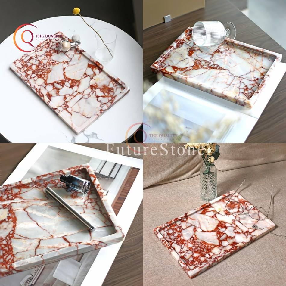ถาดเสิร์ฟอาหารหินอ่อนสีน้ำตาลขาวทรงสี่เหลี่ยมทันสมัยทำด้วยมืออุปกรณ์รับประทานอาหารเย็นสุดเจ๋งเซิร์ฟเวอร์อาหารชุบสำหรับบ้านโรงแรมเหมาะเป็นของขวัญ