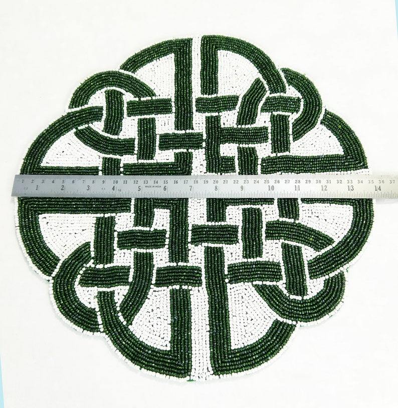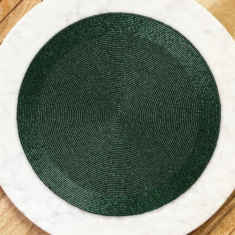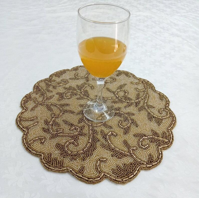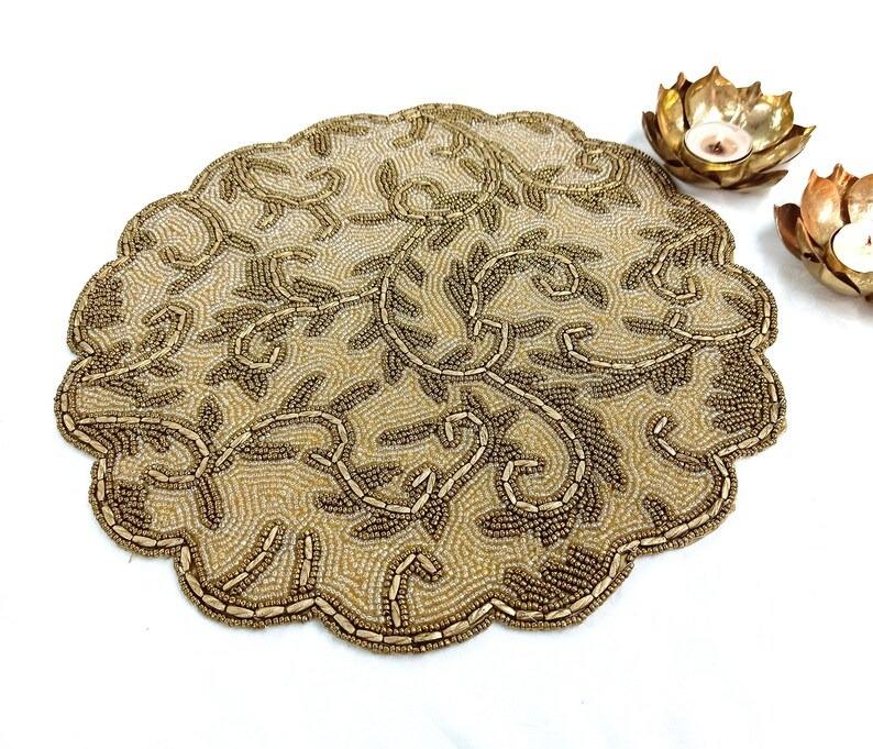 แผ่นรองจานทรงกลมทำมือสไตล์โมเดิร์น ประดับด้วยลูกปัดผ้าซาติน สำหรับตกแต่งโต๊ะอาหารในงานแต่งงาน งานคริสต์มาส งานปาร์ตี้ วันหยุด ใช้ในบ้าน