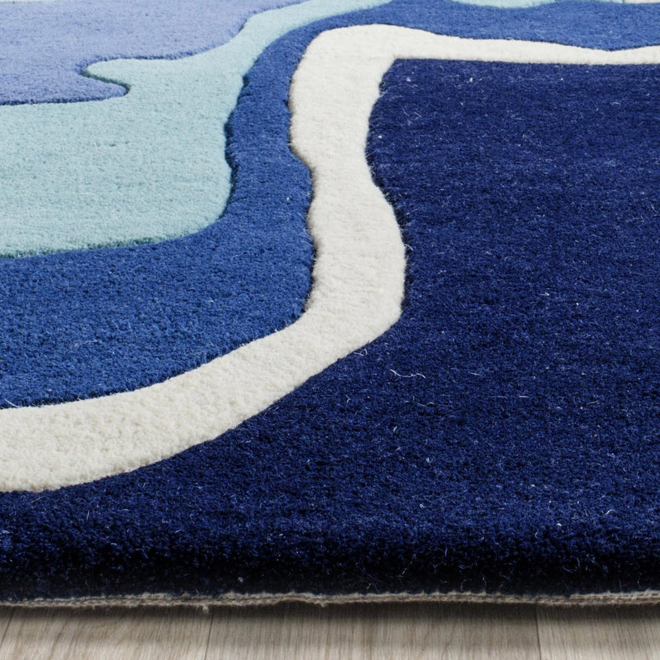 พรมขนสัตว์สีทึบแบบโมเดิร์นทำมือสีฟ้าและขาวแบบกลับด้านได้กันลื่นสูงสำหรับบ้านและสำนักงานซักใช้งานกลางแจ้ง