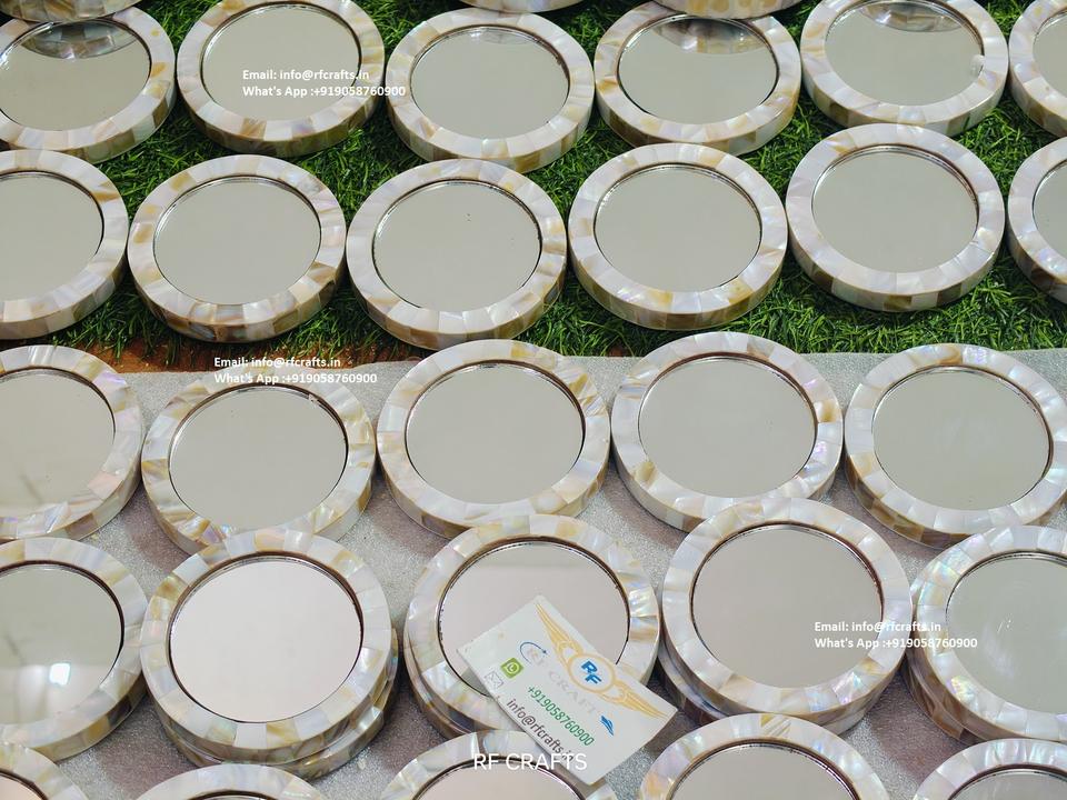 Handmade Modern Style Mini Makeup Mirror with Mother-of-Pearl Inlay Decorative Mirror for Makeup
