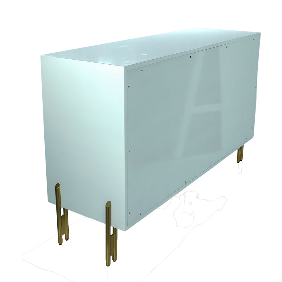 MDF + หวาย/เทียม shagreen + ขาเหล็กทองเหลือง
