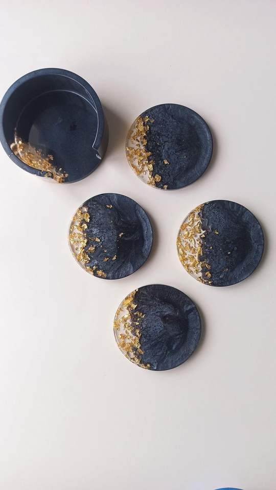 ชุดที่รองแก้วไม้ทำด้วยมือแบบทันสมัยแผ่นรองแก้วทำจากเรซินอีพ็อกซี่เรซิ่นตกแต่งโต๊ะโต๊ะงานศิลปะเสื่อและแผ่นรองเครื่องดื่มสำหรับวางบนโต๊ะโดย GM impex