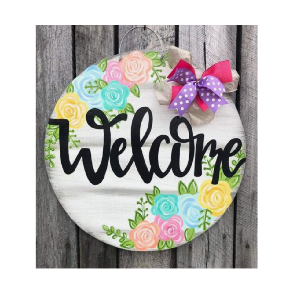 ป้ายแขวนประตูไม้ทำมือสไตล์โมเดิร์น ลายดอกไม้ฤดูใบไม้ผลิ ป้ายต้อนรับ ประดับโบว์ ปรับแต่งได้ ป้ายตกแต่งสวนภายนอก ติดตั้งง่าย