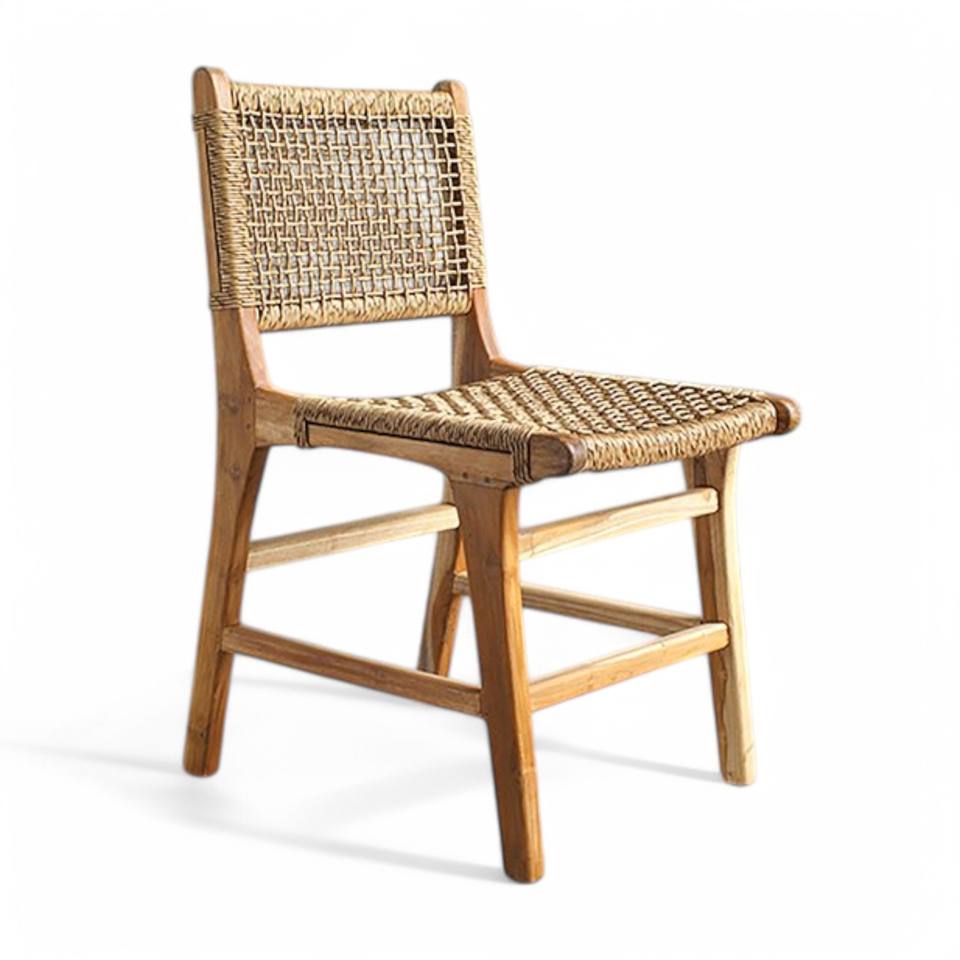 เก้าอี้รับประทานอาหารกลางแจ้งทำมือจากไม้สักสานหวายสไตล์โมเดิร์นหรูหรา นั่งสบาย เหมาะสำหรับใช้ในโรงเรียนและสวนสาธารณะ