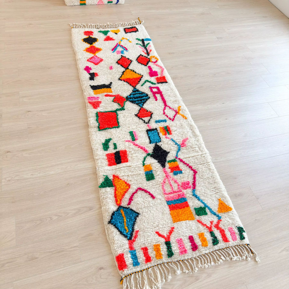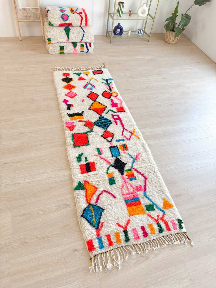 พรมขนปุยขนแกะพรมปูพื้นสไตล์โมร็อกโกทำด้วยมือลายชนเผ่าเรขาคณิตแบบแอบสแตรกต์สำหรับโถงทางเดินและห้องนั่งเล่น
