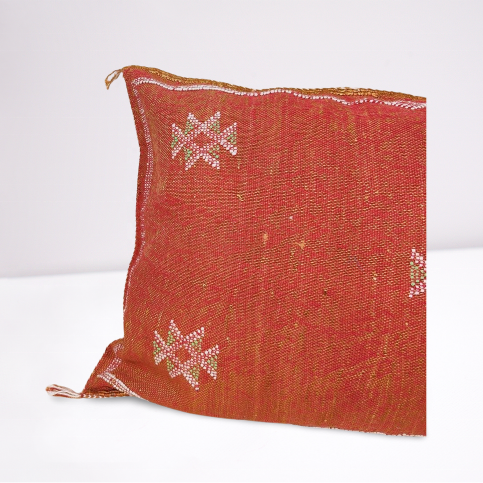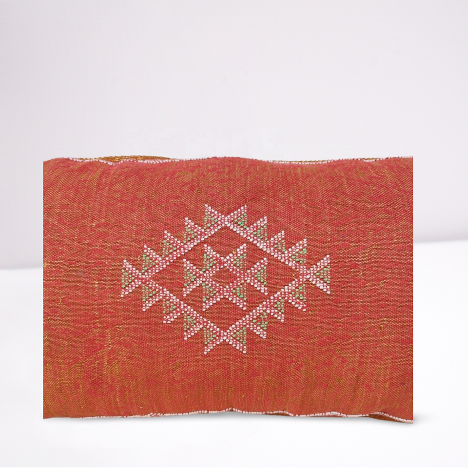 หมอนอิงชาวโมร็อกโกเบอเบอร์ทำด้วยมือดีไซน์พื้นเมืองแคคตัสบนเบาะผ้าไหมตกแต่ง & หมอนอิง