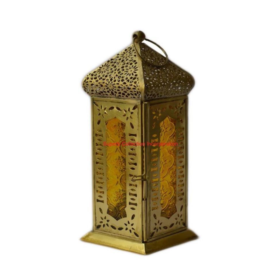โคมไฟทองเหลืองโมร็อกโกแฮนด์เมดเชิงเทียนโลหะตกแต่งสไตล์วินเทจสำหรับงานกิจกรรมเหมาะเป็นของขวัญเดือนรอมฎอน