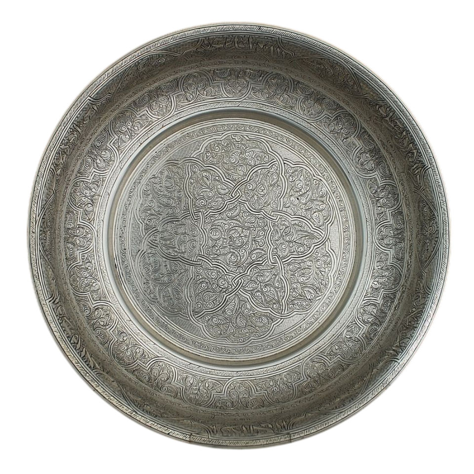 ชุดถาดเสิร์ฟชาทองเหลืองโมร็อกโกทำมือ วินเทจลายสลักแบบตะวันออก จานโลหะทรงกลมตกแต่งสำหรับงานแต่งงานและงานเลี้ยง