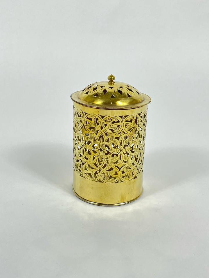 ถังขยะทองเหลืองโมร็อกโกทำมือ พร้อมลวดลายฉลุอย่างประณีต ถังขยะดีไซน์สวยงามสำหรับบ้าน ห้องนอน และห้องนั่งเล่น จากอินเดีย