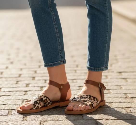 รองเท้าหนังโมร็อกโกทำมือ: รองเท้ารัดส้นแบบไขว้สำหรับผู้หญิง