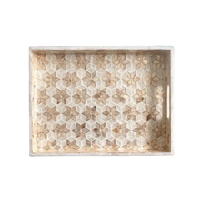 ถาดเสิร์ฟทำมือจากมุกและหวาย รูปทรงสี่เหลี่ยมผืนผ้า ลายมินิมอล สำหรับวางบนโต๊ะในโรงแรมและรีสอร์ท เป็นมิตรกับสิ่งแวดล้อม