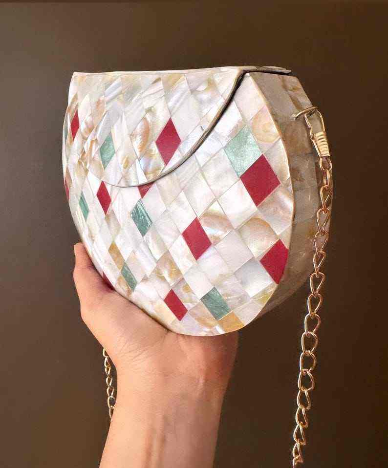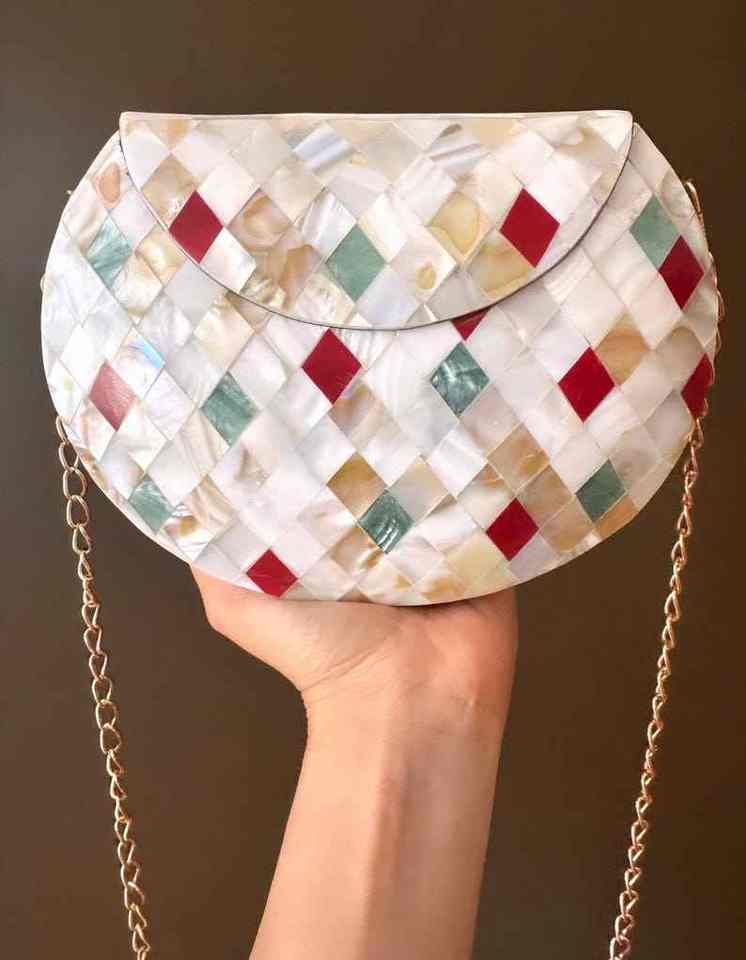 กระเป๋าคลัทช์โมเสกมุกทำมือ ประดับหลากสี เป็นมิตรกับสิ่งแวดล้อม ทันสมัย เหมาะสำหรับสุภาพสตรี ใช้ในงานทางการ งานแต่งงาน และวันวาเลนไทน์
