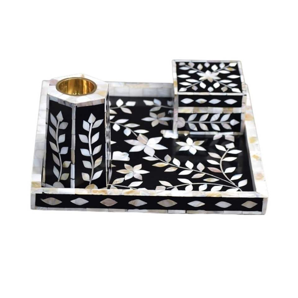 ชุดถาดและกล่องใส่บาคฮูร์ธูป มุกแท้ทำมือ