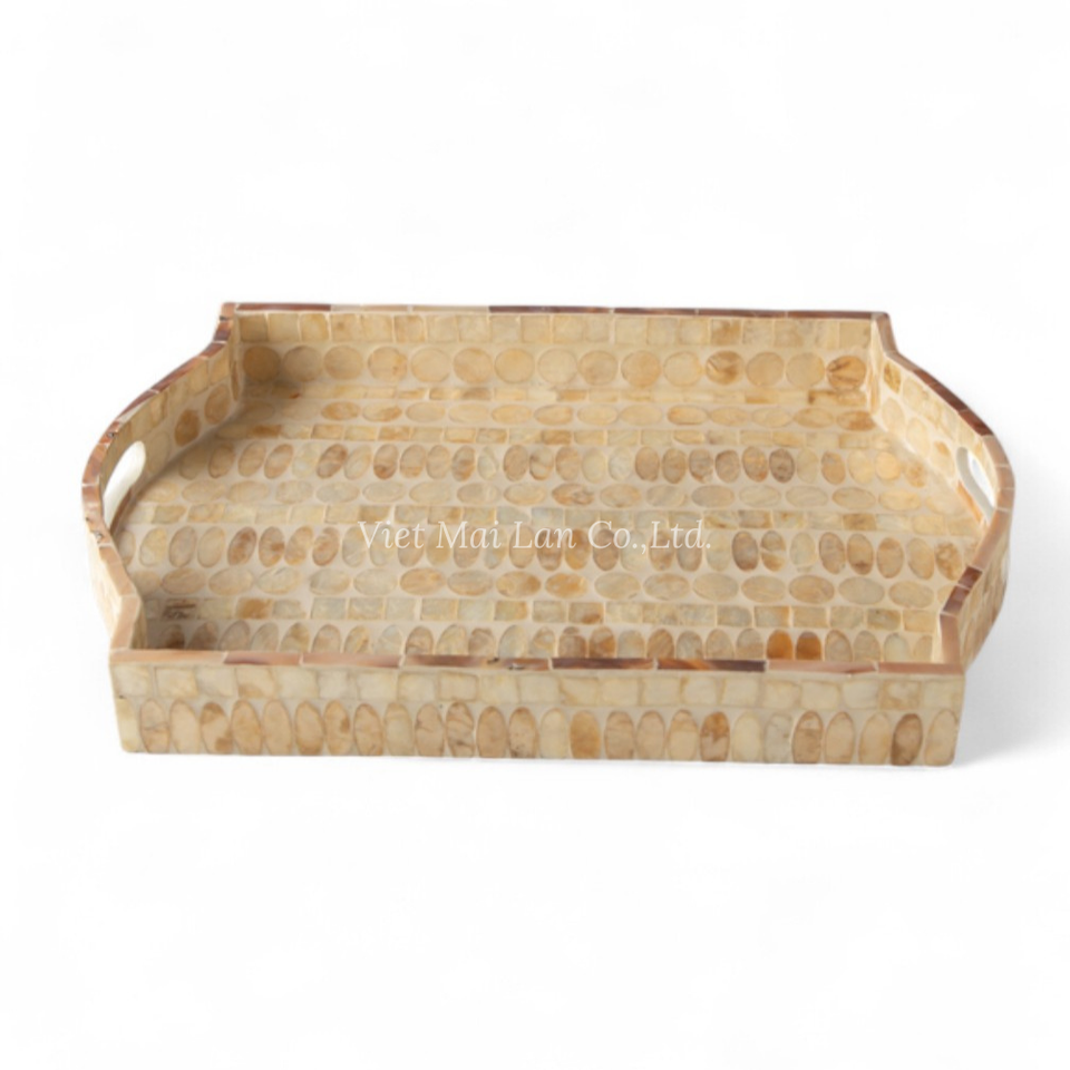 ถาดเสิร์ฟตกแต่งทำมือจากเปลือกหอยมุกธรรมชาติ ฝังเปลือกหอย เป็นมิตรกับสิ่งแวดล้อม สำหรับใช้ในบ้าน โต๊ะอาหาร ผลิตในเวียดนาม