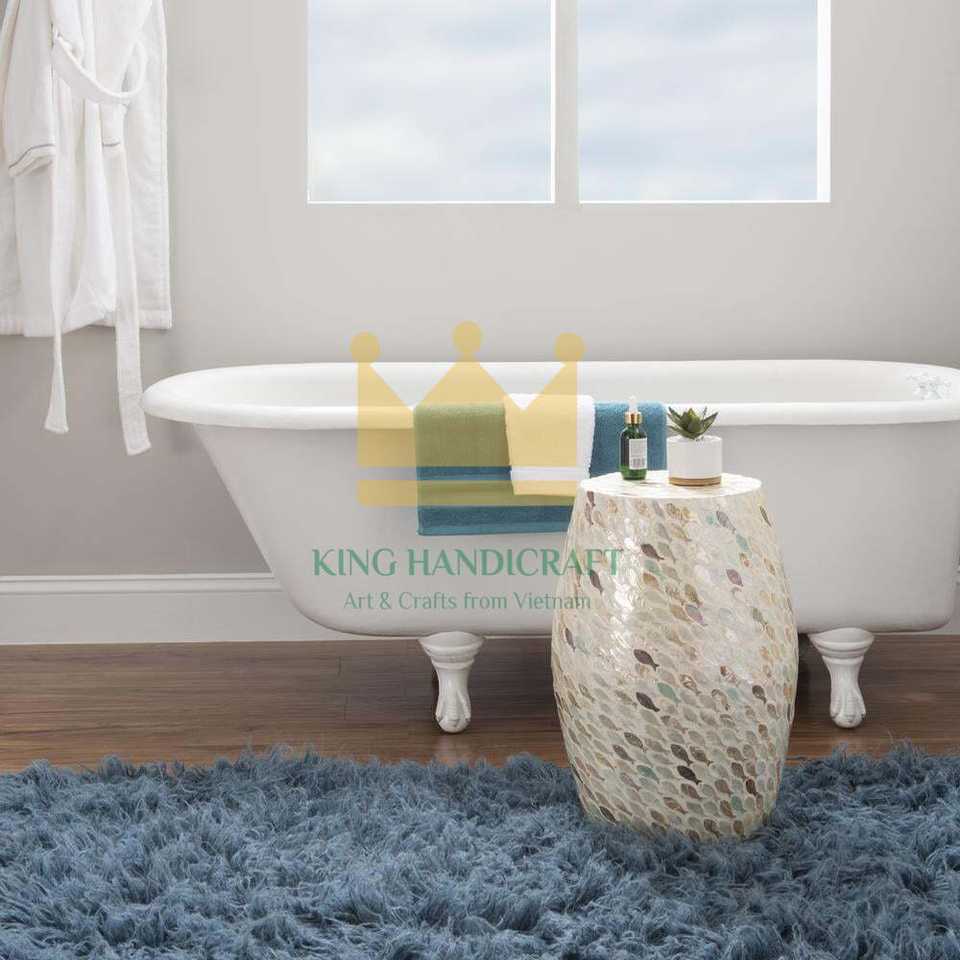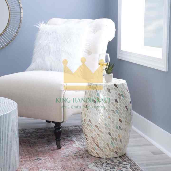 โต๊ะข้างแบบฝังฝังมุกสำหรับห้องนั่งเล่นทำด้วยมือทรงกลมโมเสคเปลือกหอยหรูหรา