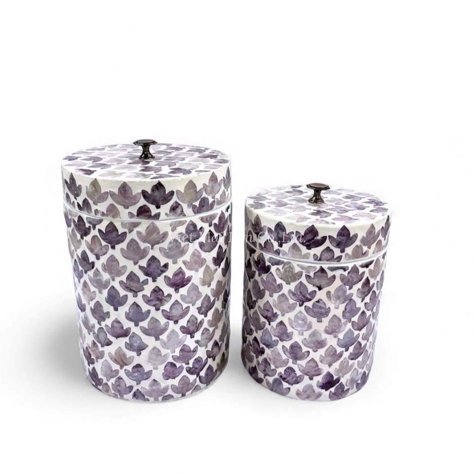 โถเก็บของตกแต่งฝังเปลือกหอยมุกทำมือ สำหรับใช้ในบ้านอย่างมีประโยชน์